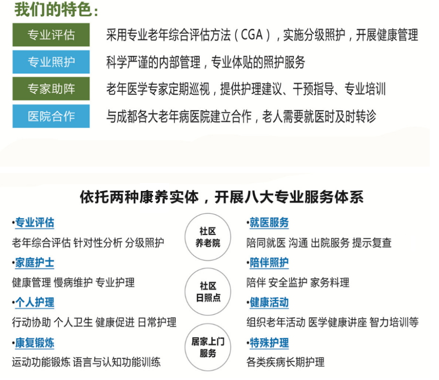 成都怡倍康養(yǎng)老服務(wù)有限公司是一家按照“康養(yǎng)結(jié)合”模式運營的專業(yè)化養(yǎng)老機(jī)構(gòu)。我們與四川大學(xué)華西醫(yī)院老年醫(yī)學(xué)中心合作,專注于社區(qū)養(yǎng)老,并在實踐中堅持關(guān)注老年人身心健康。
